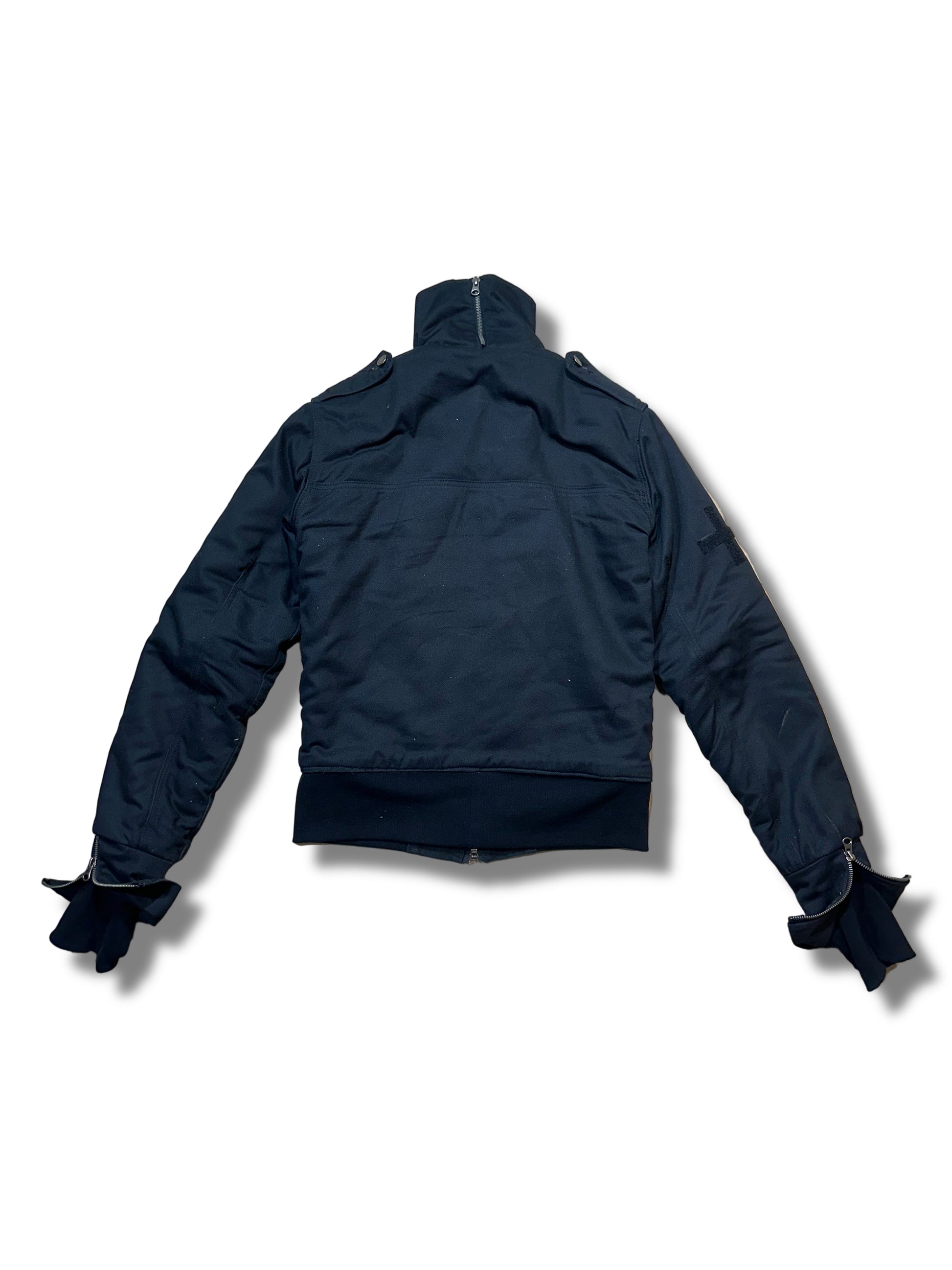 > * Intricate Design: Features a unique hybrid construction (M65 + Bomber DNA) with a high, functional stand-up collar, signature zippered elongated cuffs, and multiple utility pockets.