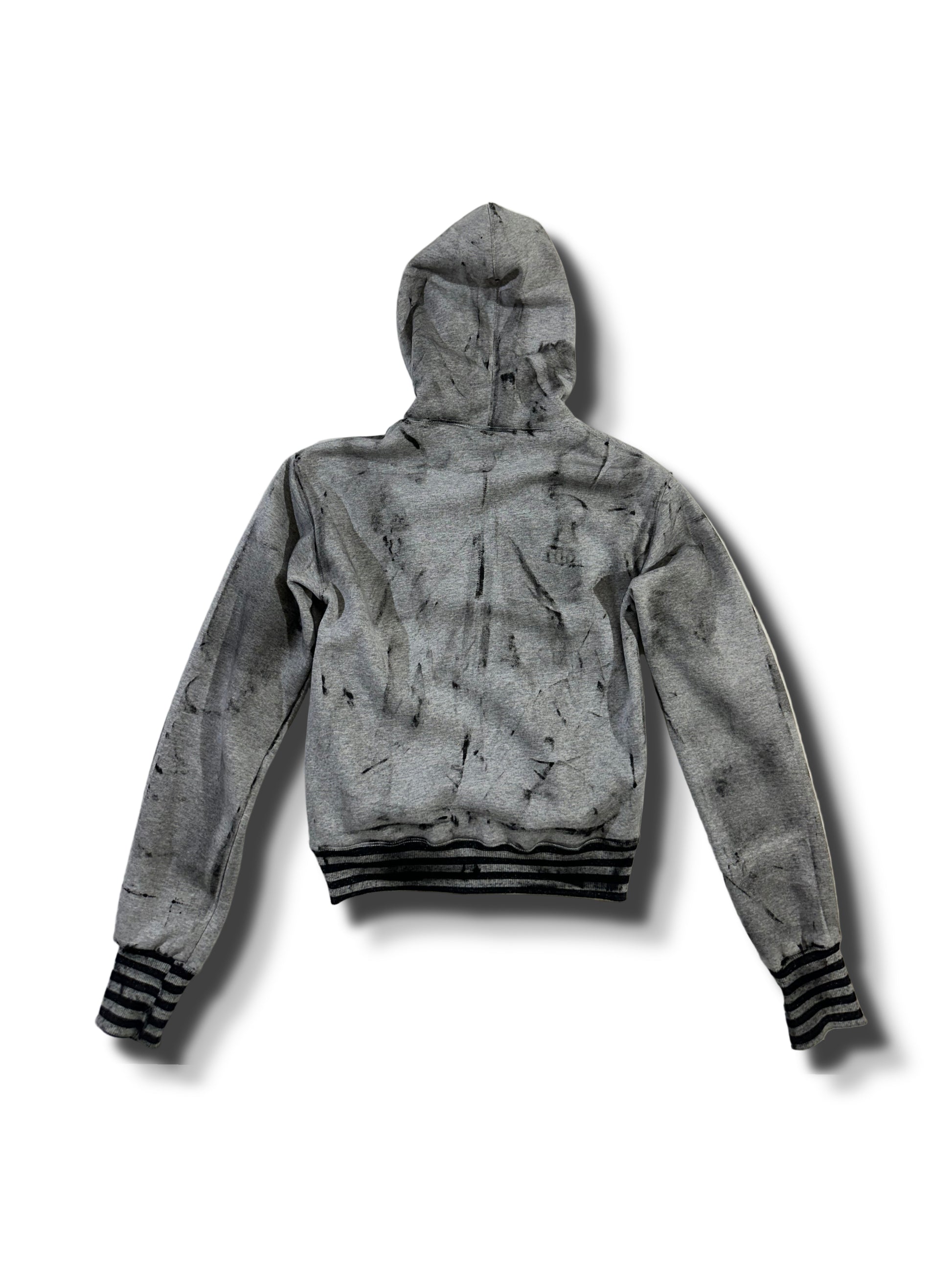 > * Artisan Patina: Each hoodie features an intense multi-layer artisanal patina process—a unique treatment of hand-applied black streaks and discoloration—that creates a textured 'veil' over the fabric. This ensures every item is a unique piece of wearable art.